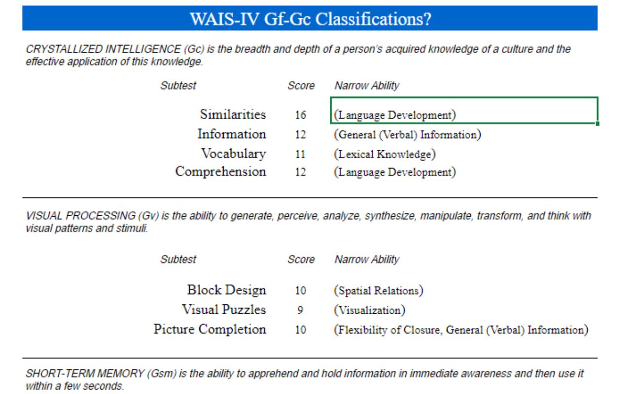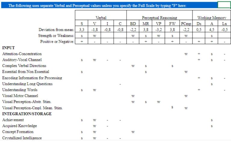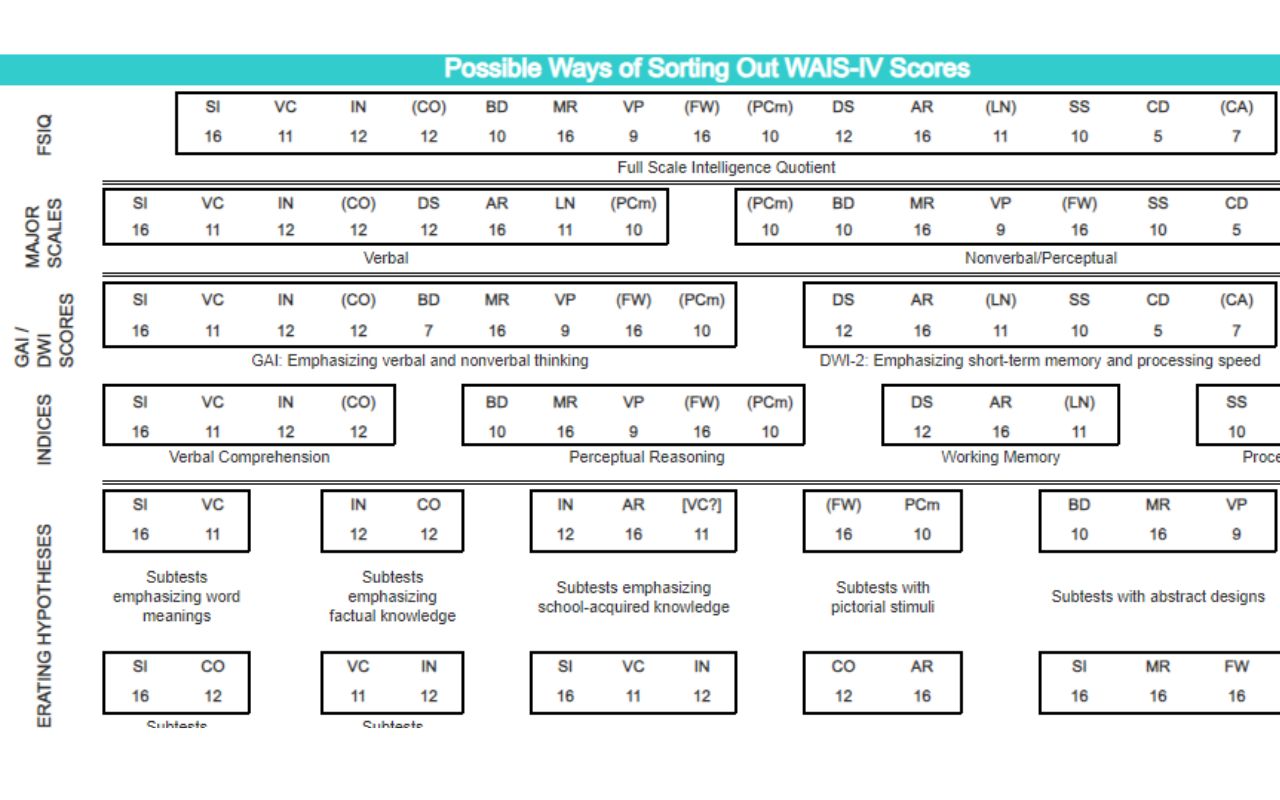 Plantilla Excel del WAIS-IV (escala de inteligencia para adultos)